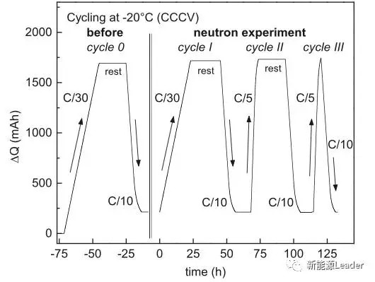 慕尼黑工业大学的VeronikaZinth等人借助中子衍射等手段,对锂离子电池在-20℃低温下的析锂行为进行了研究【3】。中子衍射手段是近年来新兴的一种检测手段,相比于XRD,中子衍射对轻元素(Li、O、N等)更为敏感,因此非常适合对锂离子电池进行无损检测。