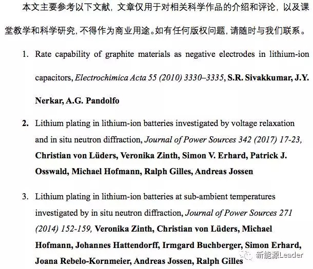 上述研究表明,低温下充电时,由于动力学条件变差,不仅仅会导致电池容量的下降,还会因为石墨嵌锂速度降低,而在负极表面析出金属锂,虽然在经过一段时间的搁置后,这部分金属锂还能够再次嵌入到石墨内部,但是在实际使用中,搁置时间往往较短,不能保证全部的金属锂都能够再次嵌入到石墨的内部,因此可能会导致部分金属锂持续存在负极的表面,不仅会影响锂离子电池的容量,还有可能会产生危害锂离子电池安全的锂枝晶,因此要尽量避免低温下对锂离子电池进行充电,必须要在低温下充电时要使用尽量小的电流,并在充电结束后,保证充分的搁置时间,以消除石墨负极的金属锂。