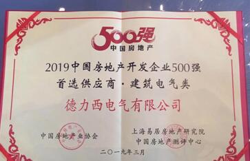 3月20日,北京,备受业界关注的中国房地产开发企业500强测评成果发布会暨500强峰会如期开幕。2019年度"中国房地产开发企业500强"和"500强房企首选供应商服务商品牌"等测评榜单同步揭晓,中国电气行业领先企业德力西电气不负众望再度荣膺500强房企首选供应商服务商品牌,以突出的综合实力持续成为500强房地产企业值得信赖的战略合作伙伴。