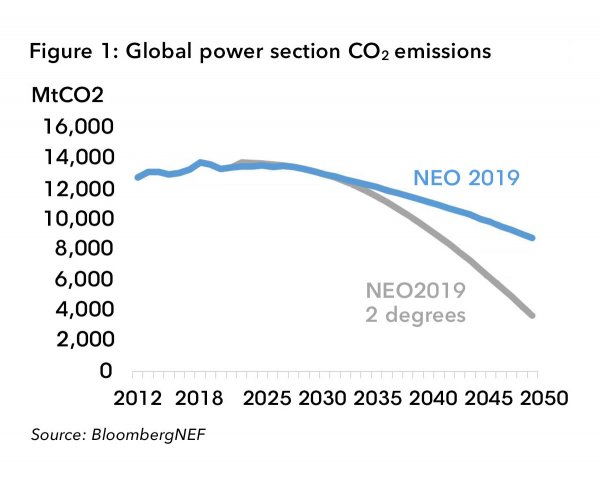 根据今年的NEO,全球温室气体排放和将气温升幅控制在2摄氏度或更低水平的前景喜忧参半。一方面,太阳能、风能和电池的发展将使世界至少在2030年之前都能实现这些目标。另一方面,在那个日期之后还需要做更多的工作,才能使世界保持在2摄氏度的轨道上。