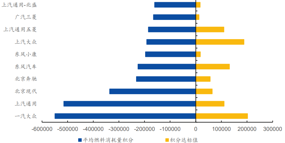 经过计算,部分合资企业的积分缺口较大(分)资料来源:工信部