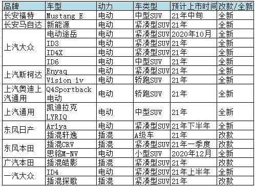 五菱宏光MiniEV,秦PLUS,特斯拉ModelY,滴滴专用车D1,大众ID4,小鹏P5,领克0等这些都是2021年可能的明星车型。