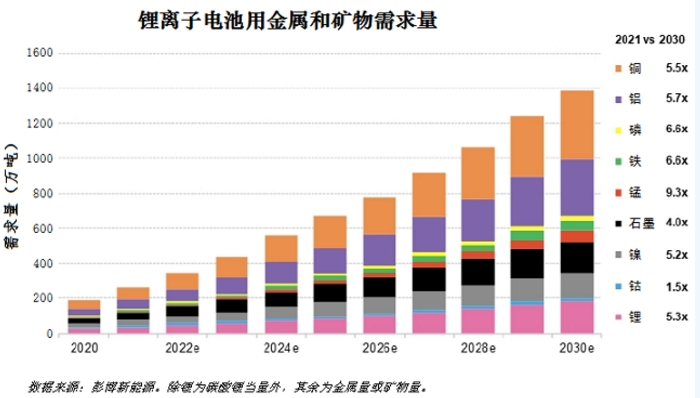 彭博预计,到2030年,锂离子电池年需求量将超过2.7太瓦时,较去年预测值上调了35%。乘用车销售量从去年300万辆增至2025年的1400万辆,占总市场的比例将达到72%。
