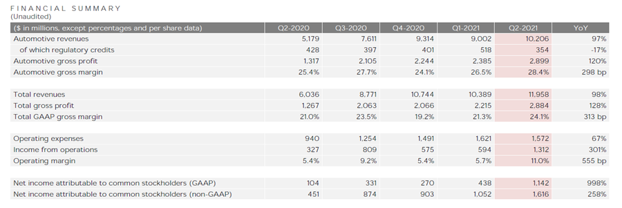 7月27日,资本邦了解到,特斯拉(TSLA.US)发布2021年第二季度财报。