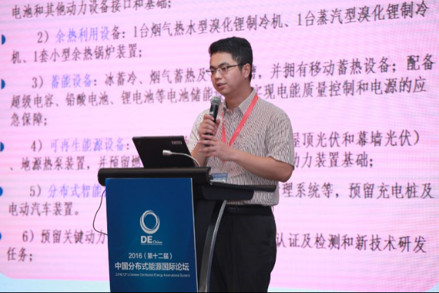 第三个层面就是技术标准,实际上分布式能源从国家政府到地方政府都发了很多文件、政策、鼓励支持,文件都很好,但是真的要在地方上,或者在某一个省某一个市上一个项目,可操作的,可以执行的标准或者文件是很少的。比如说要在上海上一个分布式,首先面临的就是如何规划、设计,它的标准,现在有地方标准有行业标准,但是还没有全国统一的标准,建设过程当中也是一样的,一系列的标准还是缺乏的,这方面也是做了相应的研究。最后,分布式能源是一个跨界领域,需要包括燃气、电力、建筑暖通,包括IT行业所有行业共同的努力、参与,分布式能源才能有大规模的发展,电科院包括国家分布式能源研究中心也是开放的,也希望能够为各位参与分布式能源的主体提供各种各样的服务。