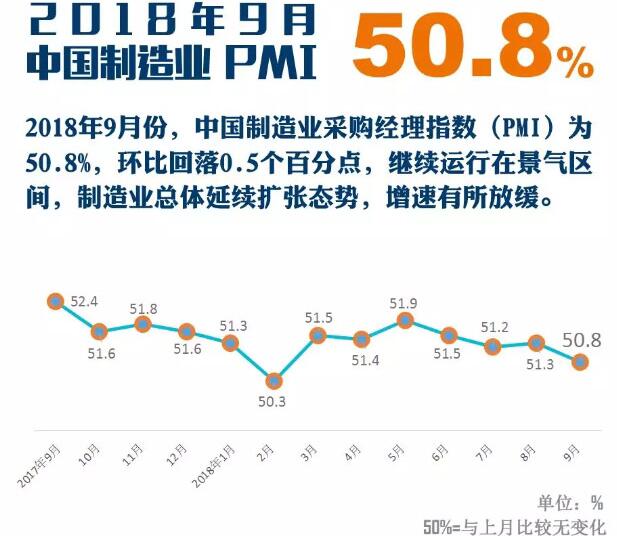 制造业PMI已经连续 26个月高于“荣枯线”9月30日,国家统计局服务业调查中心和中国物流与采购联合会发布了中国采购经理指数。9月份,制造业PMI为50.8%,环比回落0.5个百分点,处于今年3月份以来的低点。不过,制造业PMI已经连续26个月位于50%以上。 [详细]