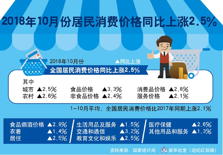 国家统计局解读2018年10月份CPI和PPI数据国家统计局今天发布了2018年10月份全国居民消费价格指数(CPI)和工业生产者出厂价格指数(PPI)数据。对此,国家统计局城市司高级统计师绳国庆进行了解读。从环比看,CPI上涨0.2%,涨幅比上月回落0.5个百分点。其... [详细]