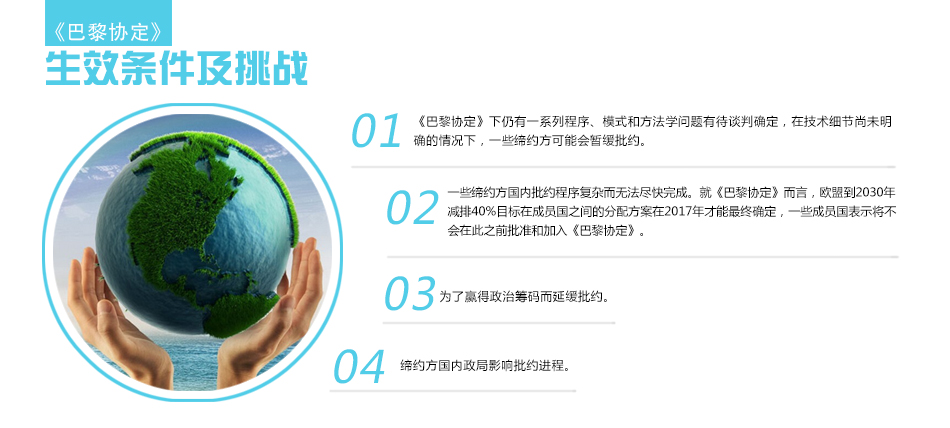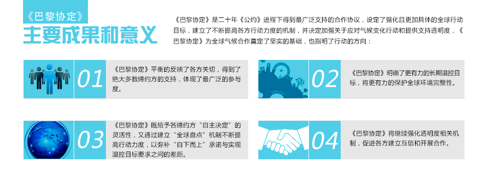 日前闭幕的巴黎气候大会通过《巴黎协定》,在气候公约原则的基础上,确立了2020年后全球应对气候变化的制度框架,成为继《京都议定书》后全球 [详细]